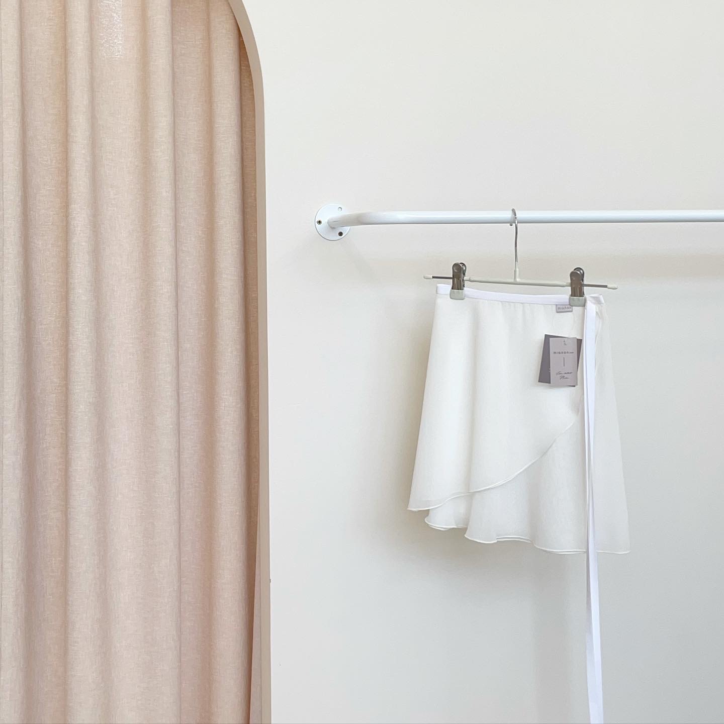 발레하면 떠오르는 백조의 호수, 백조의 호수하면 연상되는 화이트, 스트레치 리본이 적용된 올 화이트 스커트를 소개합니다.