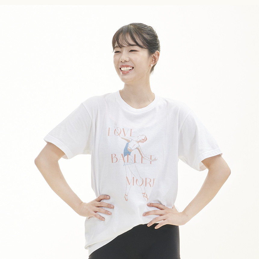 발레리나 일러스트와 문구로 디자인한 프린팅 티셔츠 입니다.